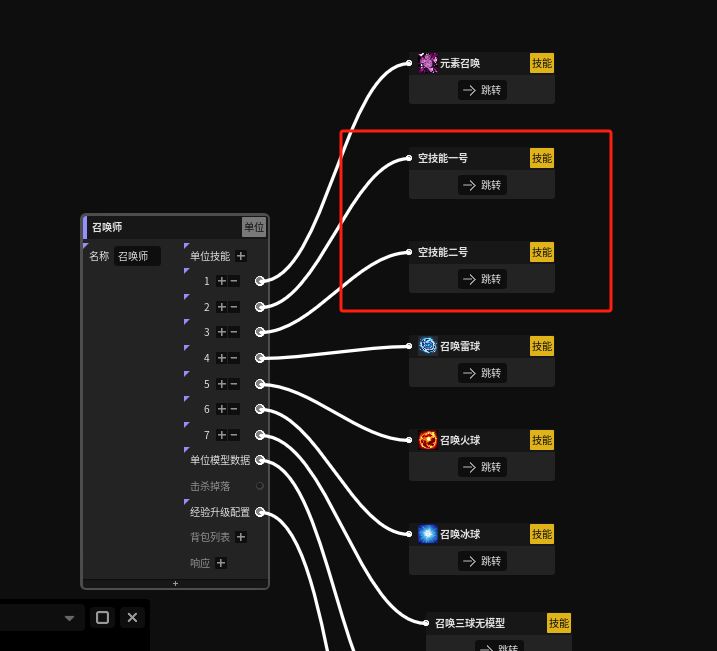 元素召唤一级时保存一个技能,升级后保存两个技能,我们使用swtich进行判断