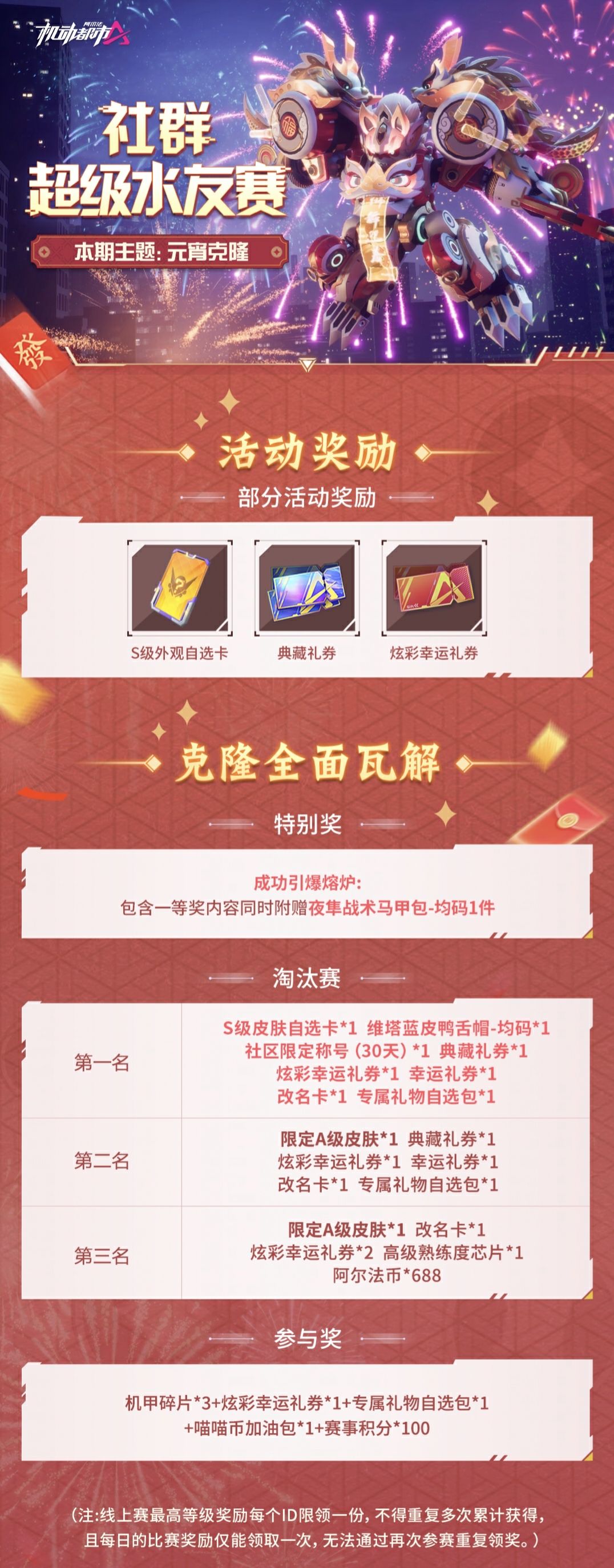 本次参赛奖励全面升级!加入官方社群,参加水友赛,S级皮肤自选卡、限定周边、典藏礼券等你拿!
