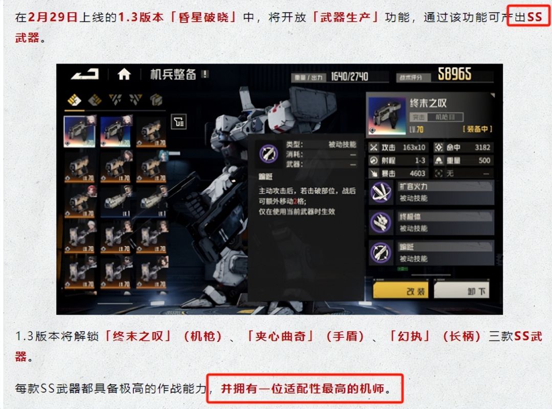 - 新版本只会上线3个SS武器,机枪、长柄和手盾