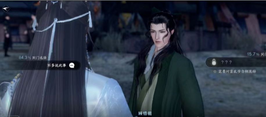 1、跟顾惜朝第一个对话,右侧选项没有解锁的;是因为上一段剧情快结束的时候,跟乱步对话没有选择【含糊其辞】。