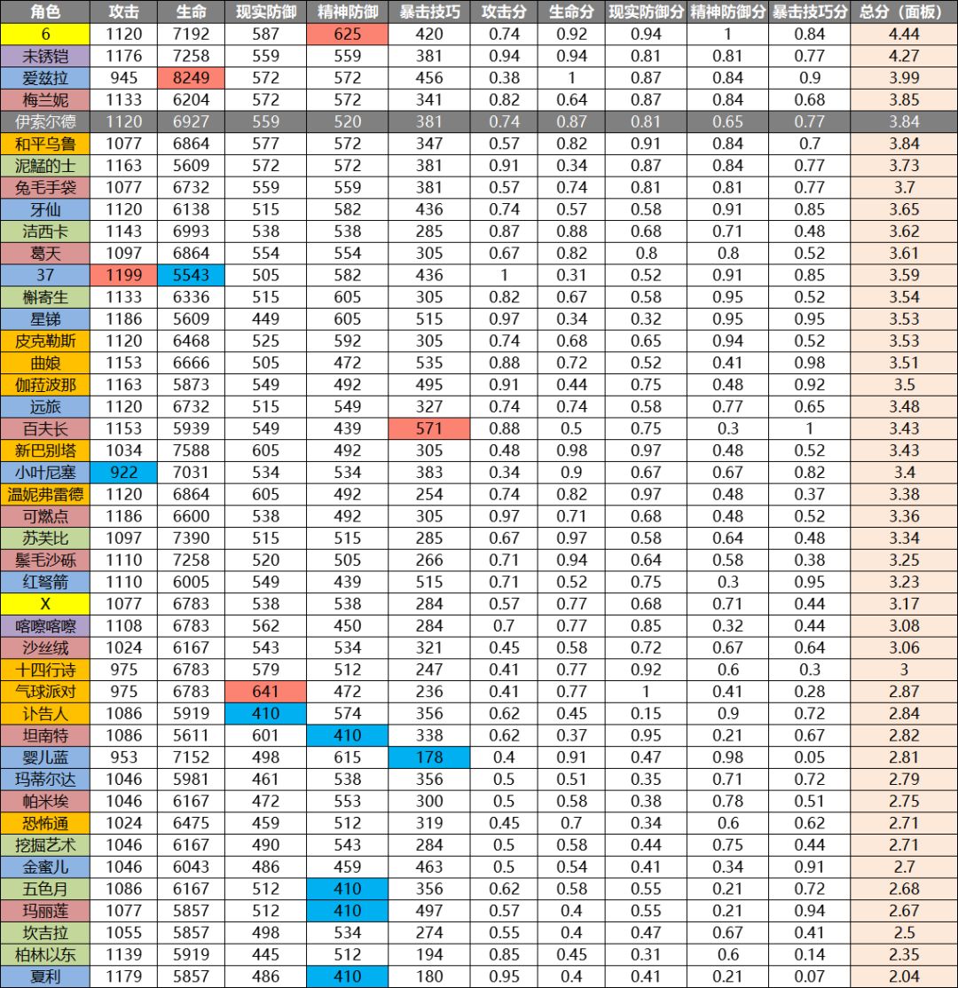 关于面板,伊索尔德攻防兼备,更倾向于防御,但总体却不符合灵智的高额面板