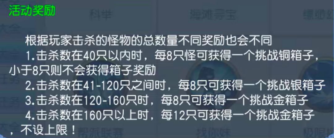 3.极限挑战。活动时间是在每周六的15点开始,这个活动是赚取金币最稳最多的一个活动了,小编98级,基本上打完后会获得40个箱子,开出30多本低级兽诀,全部卖出大概在2万多金币。