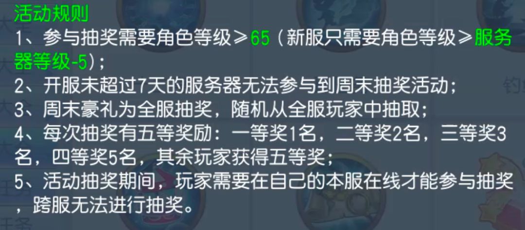 2.周末豪礼。需要在一周内积累6天的活跃度达到150后,才具有参加资格,抽奖获得的物品主要有高级兽诀、潜能兽诀、三星宝宝等。