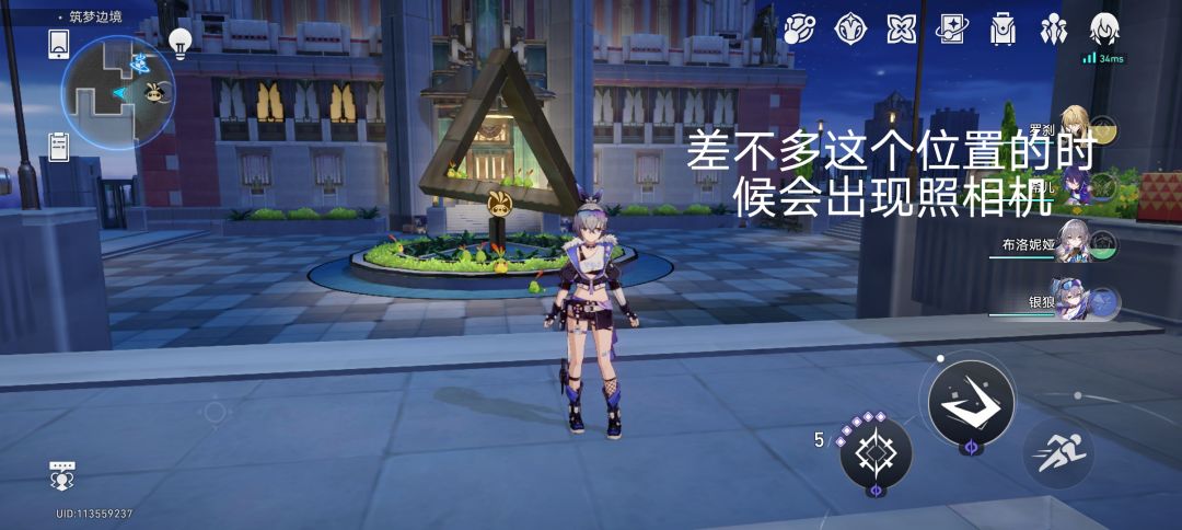 1、来到【筑梦边境】家族建设群来到图上的地方,然后自己通过慢慢移动变成三角形就会出现照相机,之后拍照就可以完成成就。