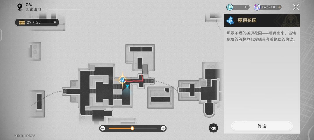 1、来到【筑梦边境】屋顶花园处传送上来转身过来可以看到一只紫色的猫头鹰与他交互五次。