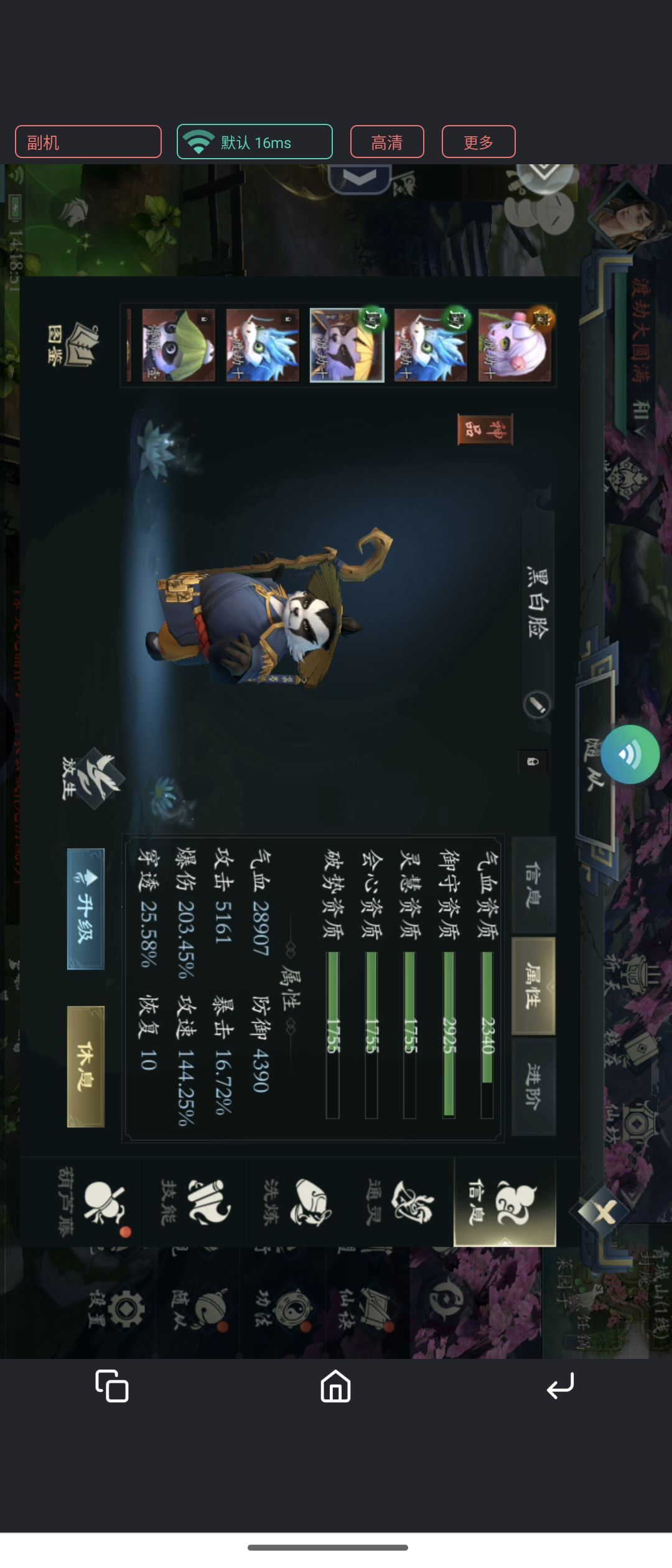 第三位,团子,防御最高,血量最厚。搭配不动如山 坐忘昆仑,妖灵做受到伤害几率触发增加 11% 最大生命值护盾,很难死。有时候我死了宠物都死不了。