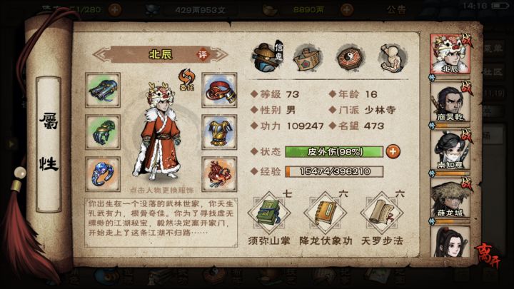 想节省贡献的萌新,进阶时可以学习大力金刚拳,内功用野外的三阴,都比我这须弥山掌+降龙伏象功要强!