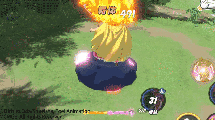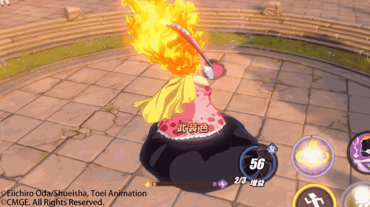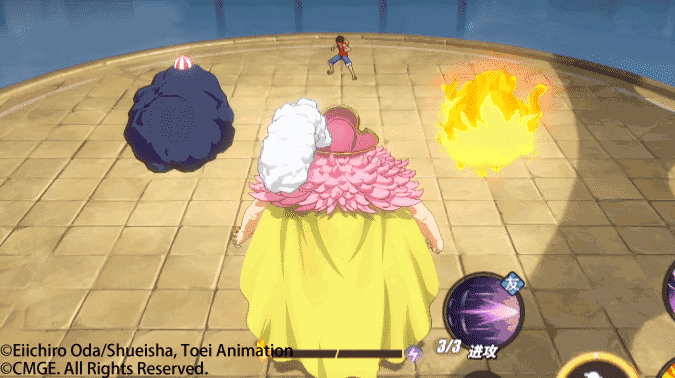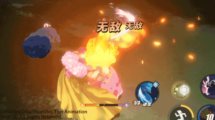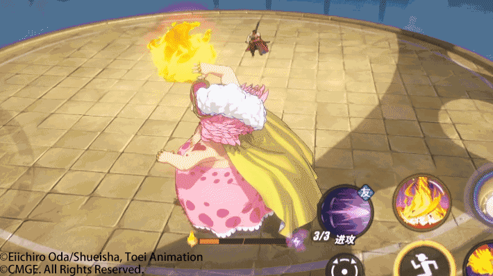 游戏内,巨大的身形,搭配其强劲的实力,四皇夏洛特·玲玲可谓是风采无限!在竞技场战斗中雷系技能组与火焰技能组的交替运用,使其无论在技能范围还是在技能伤害上都有着独特的表现,更是让对手难以招架!