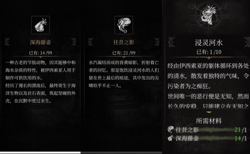 可以看出,它所需的材料是 往昔之影和深海藤壶