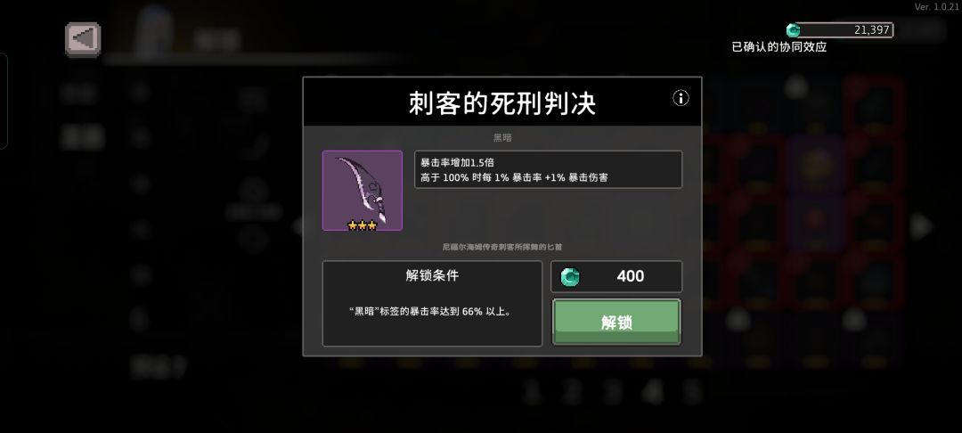 暴击匕首解锁条件:黑暗暴击达到66%,通过6黑暗6物理技能协同加隐刃,在局内通过黑暗技能触发暴击解锁