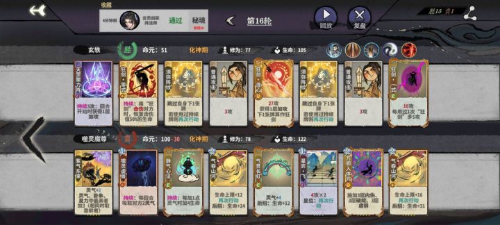 前两天用阵狂炎雪打过了秘境十,感觉陆剑心也可以参考一下思路,于是试了试阵狂玩法,结果一把就过了(元婴之前没刷出牌自己退的不算),成了我第四个过秘境十的角色