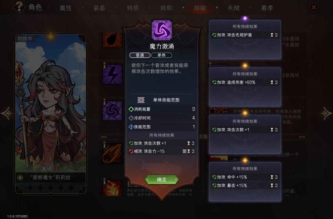 第5个是技能加成这里,扩散和激涌都可以实现15%的命中率加成,考虑到两个都出现的概率比较低,但至少会有一个15%命中率加成的出现,火球术能量最大叠加20%命中率加成,配合基础能量减半,基础伤害减半,是非常容易实现20%命中率加成的。