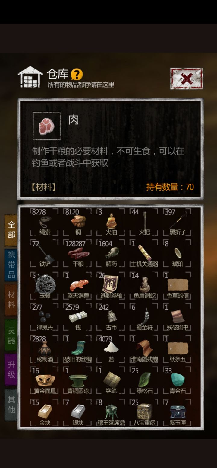 截止目前为止,本人通关六次来看,干粮优先级>秘制酒>解毒>三系减伤丹,比如律鬼丹。一口气通关五层,380干粮+12秘制酒解伤筋动骨状态+6解药解毒+12三系丹,完全没有问题~