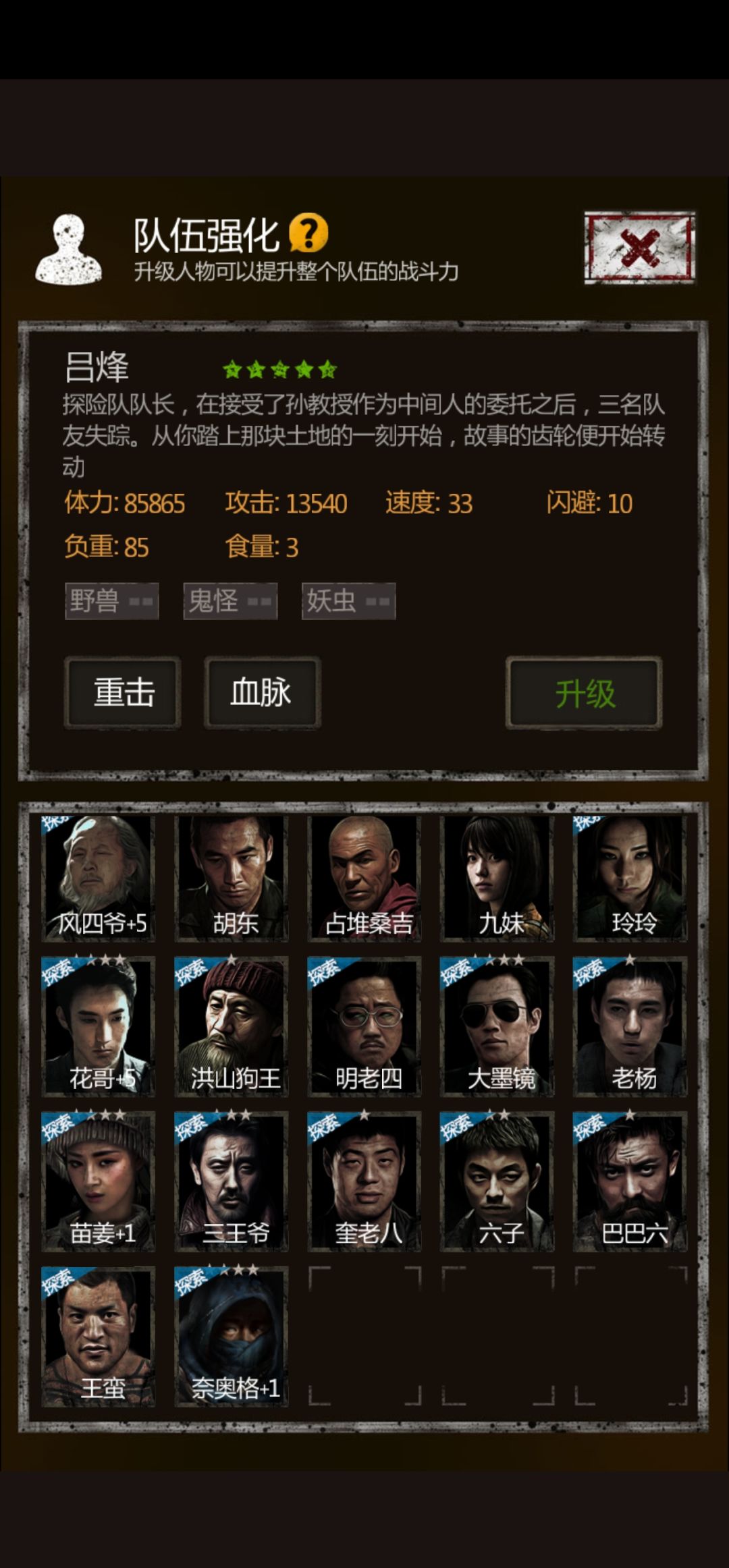 前排,和尚,司令,老九叔,胖子,马头人