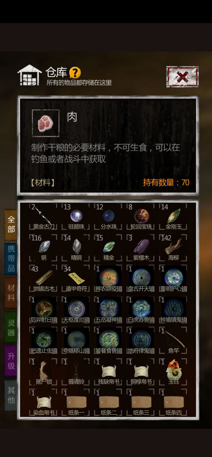 第二梯队神器:开荒优先,重明,神农 。重明镜子提供三系免伤20%,神农提供回血20%以及最节省干粮的走路回血属性。