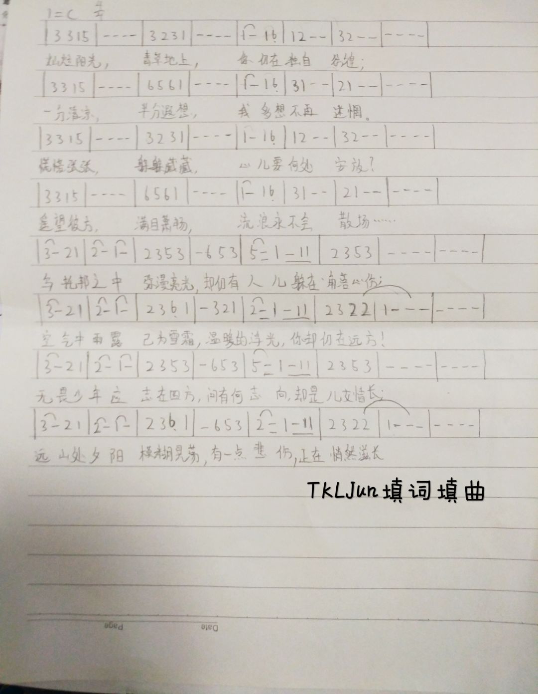 关于这首词嘛……其实我已经把曲填好啦,BGM也即将制作完成。最近想着把整首歌用ACE创作出来,可实在是……学业繁忙。如果有机会的话,这周日(9.6)我会尽量把完整的曲子弄出来,还请大家多多关照啦~