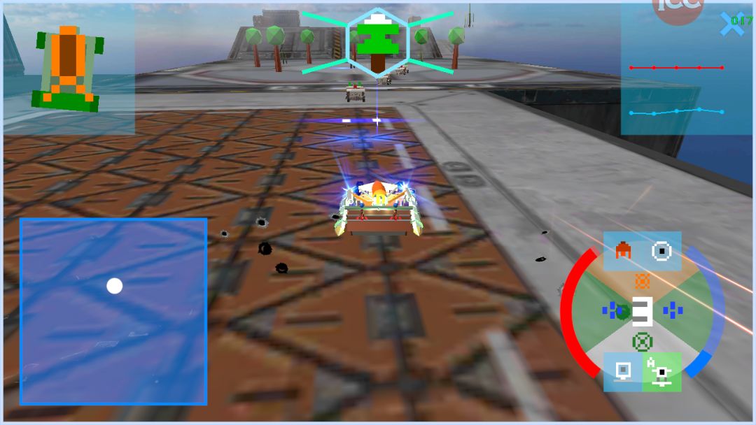 比如说左上角车体(炮)方向显示器,本来没有零件有该功能,但是通过初始向量夹角当前向量并计算加上ui实现。