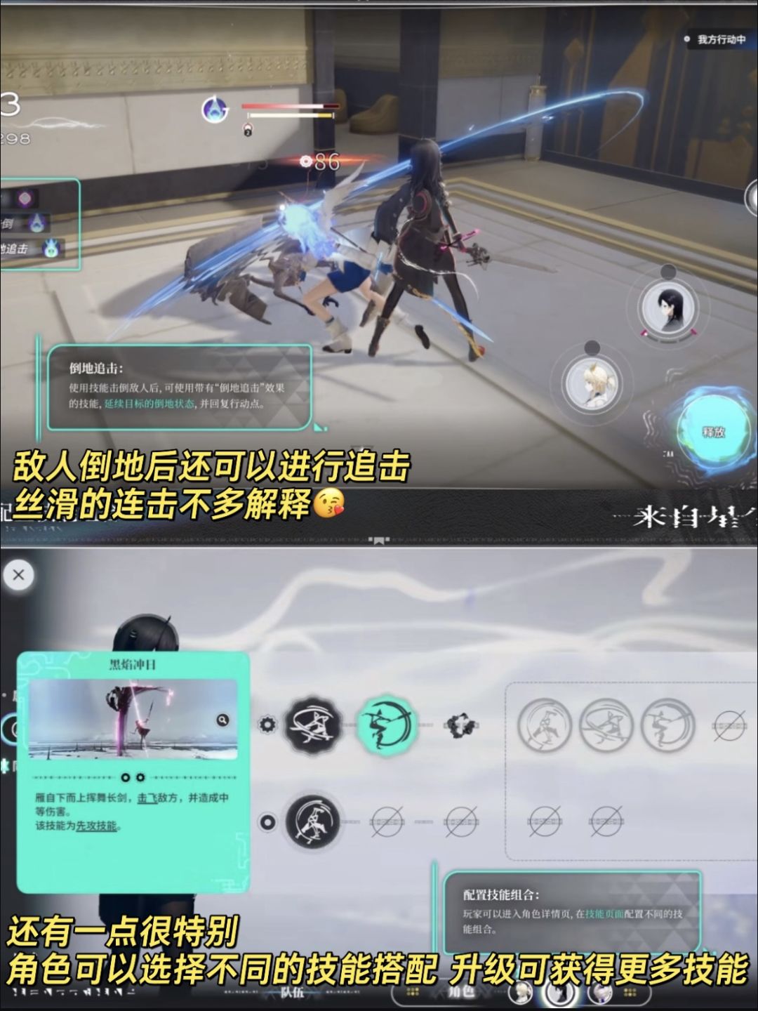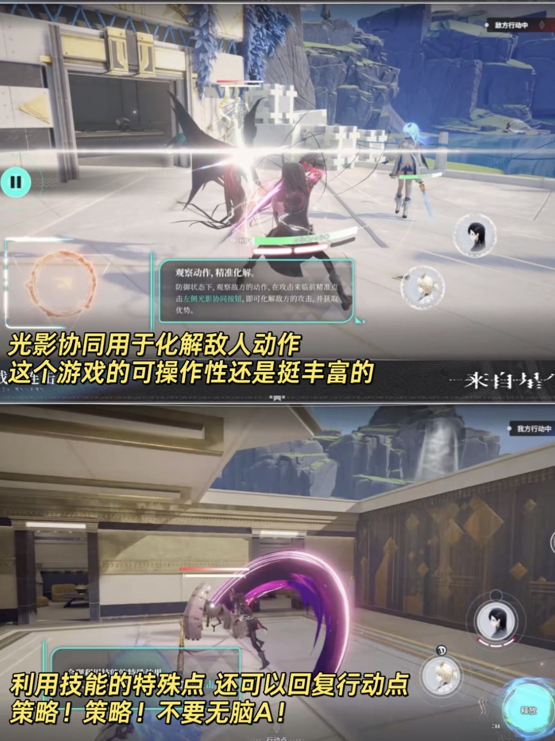 🌟独特的战斗系统:游戏拥有回合制与动作结合的独特战斗系统。利用「光影协同」的机制,可以在合适的时机作出回应,抵挡敌人攻击,还有队伍成员一起释放的连携攻击,倒地追击等等…还可以组合不同的技能,打出各种不一样的效果✨