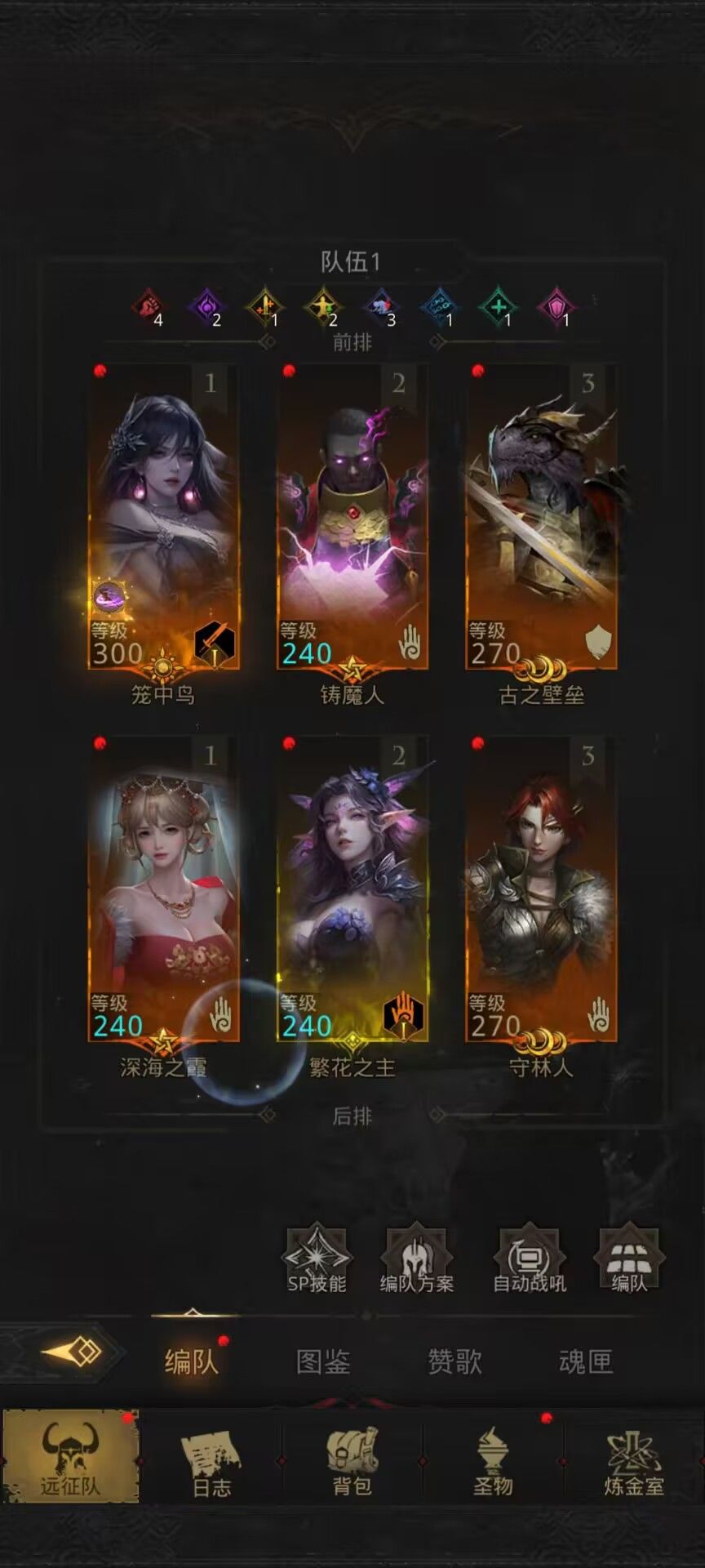 C270链接210用图1或者图2阵容,实际推图过程中发现铸魔人更好一些,加抗性保障工具人生存。