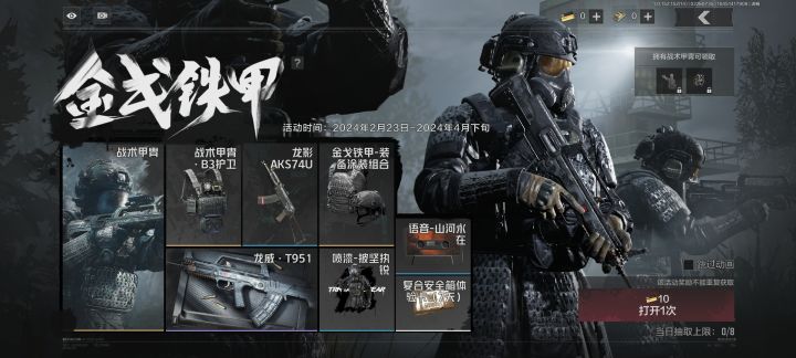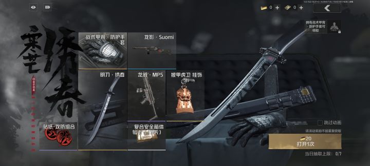 暗区突围新军需,绣春刀和战术甲味,这些服装和刀皮都很具有中国特色,其中刀皮是根据唐朝锦衣卫的佩刀为圆形制作,而皮肤是根据古代士兵打仗时所穿的铠甲为原型的,十分的帅气,但是如果你想要抽到刀皮的话只要你运气好一点,保底的情况下也是只要700左右,我个人建议先抽刀皮,也可以冲一个月卡,然后两个池子里各抽一发,可以把保底的打半个月6格拿下也不是很亏,还比品尝冲6格保险赚