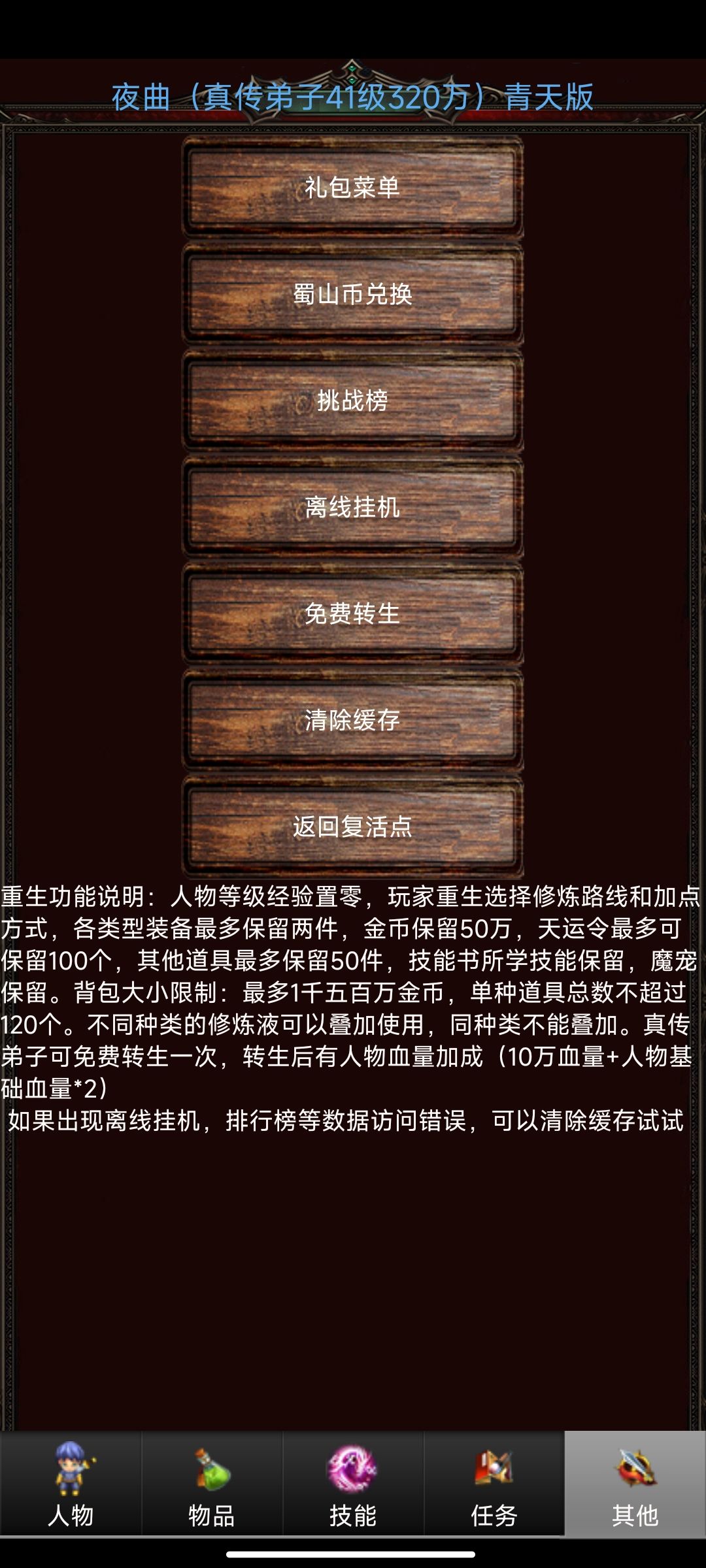 最重要的是等级,没有等级无法加点技能,技能带来的属性的加成。10级,20级,30级都是需要完成相应的师门任务才能解锁上限。等级对于这个数据游戏相当重要。一定要以等级优先,下图中有个离线挂机,前期就挂能打的过的最高等级的怪,前20级就挂蛇🐍。后面挂七头蛇王刷出来90个混沌莲花,用于进阶极地的普通齐天大圣。然后继续挂七头蛇王挂到110个混沌莲花就,可以挂机毒牙蛇王了。