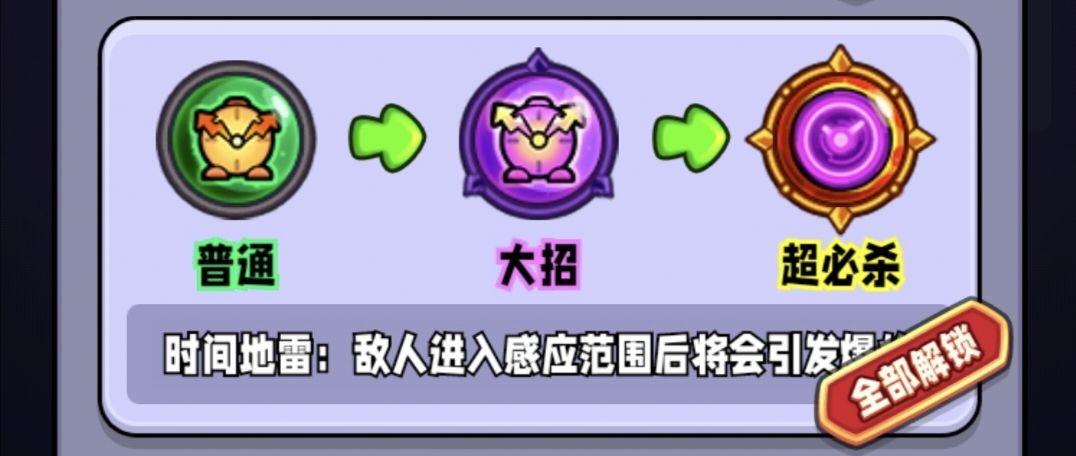 技能伤害:T1,伤害很高,解锁超必杀后范围降低但伤害提升