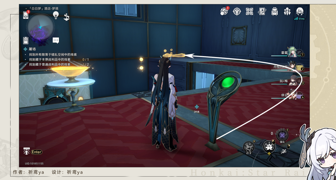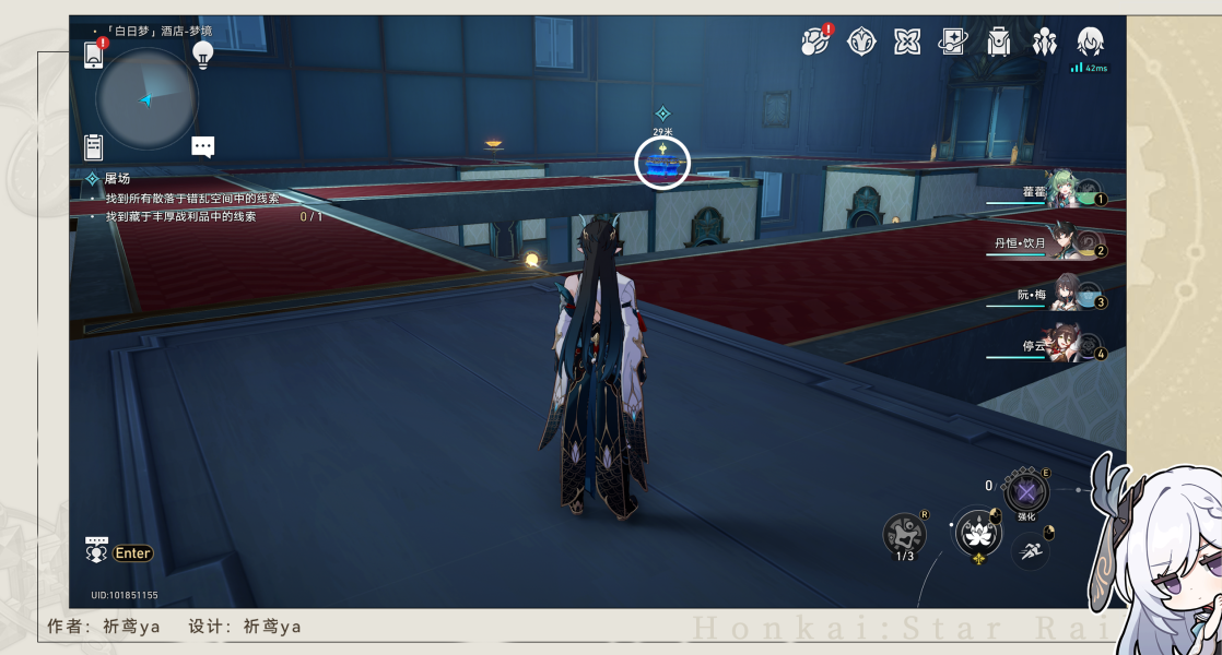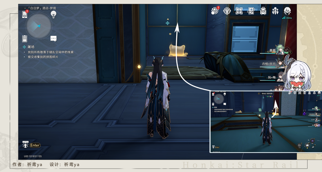 (1)进入空间后,先获取梦泡。之后向左走,从南边的墙壁上去