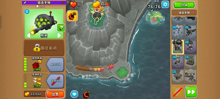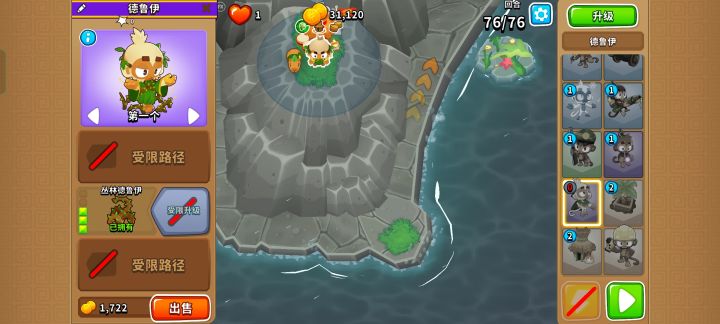 开局先下220猴村+030德鲁伊,在气球全都进场之后卖德鲁伊,下052狙击手。比较极限。