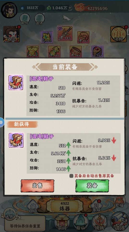 1、秘境奖励。每天可以快速奖励当前进度前20关的物品,修仙游戏不要肝,保持一个低等级的进度,每天领取快速奖励后再花2分钟打到当前进度就停手。