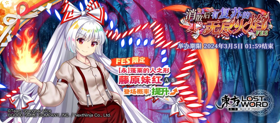 ✨角色概率UP:「[永]蓬莱的人之形 藤原妹红」登场概率提升的FES限定祈愿!