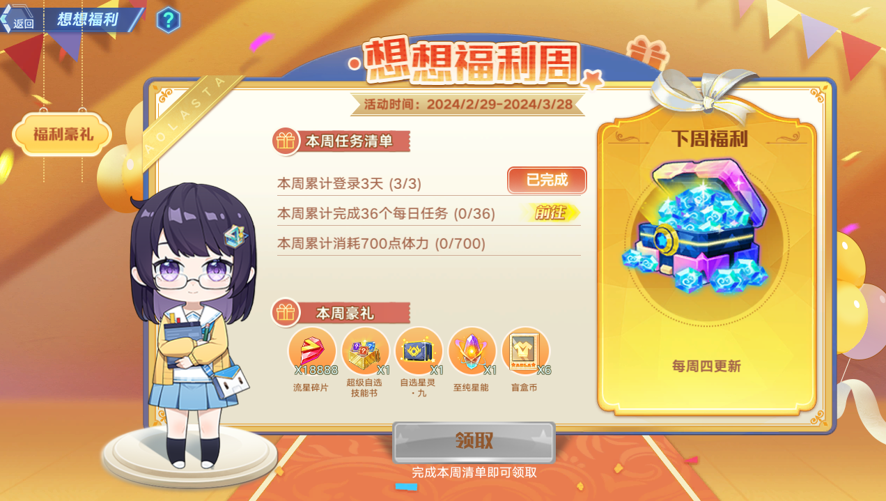 活动时间:2月29日更新后-3月7日更新前(仅此一周)