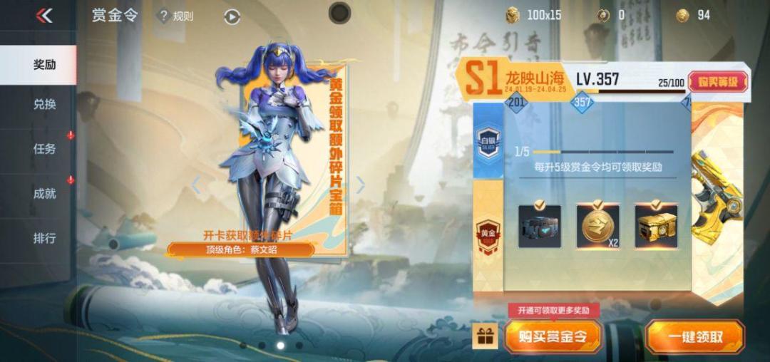 哈喽各位CFer大家好,S1龙映山海赏金令也已经上线正式服了,核心奖励COP 357-雷霆王者、蔡文昭以及高爆手雷-雷霆王者各位玩家都多少碎片了呢,也预祝大家新的一年有好运气喜提成品。在赏金令普通兑换专区里面,也是返场了墨刃-幻神,那么这款武器值得拿下吗,快随我一起来看看吧!