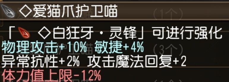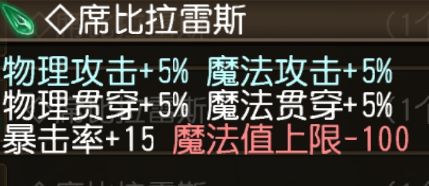 [MP上限+40 物理贯穿+70% 命中-45% 攻击速度-10% 暴击率+140% 攻击MP回复+1 武器攻击距离+1.0m]