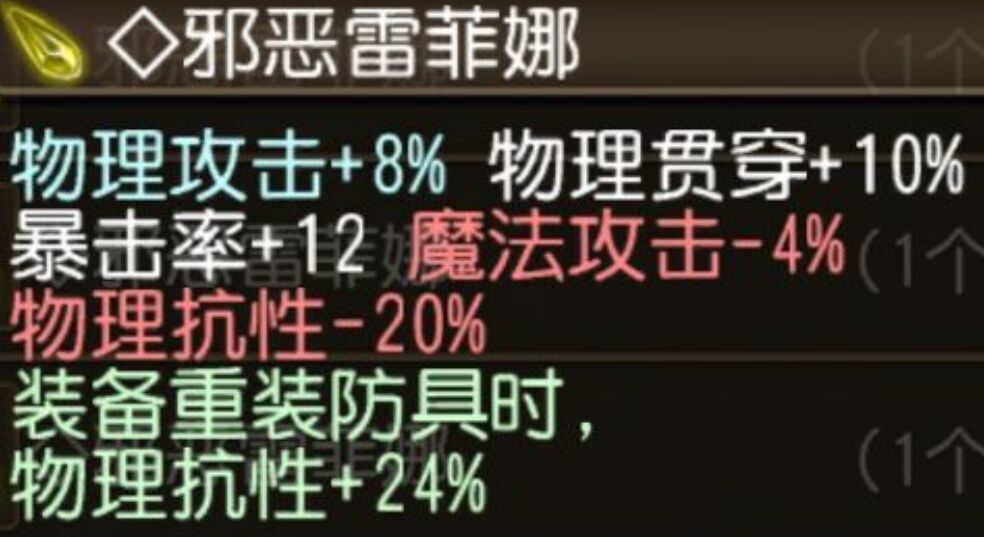 [物理攻击+8% , 物理贯穿+16%, 冲撞伤减轻+32% ,恨意值+4%]