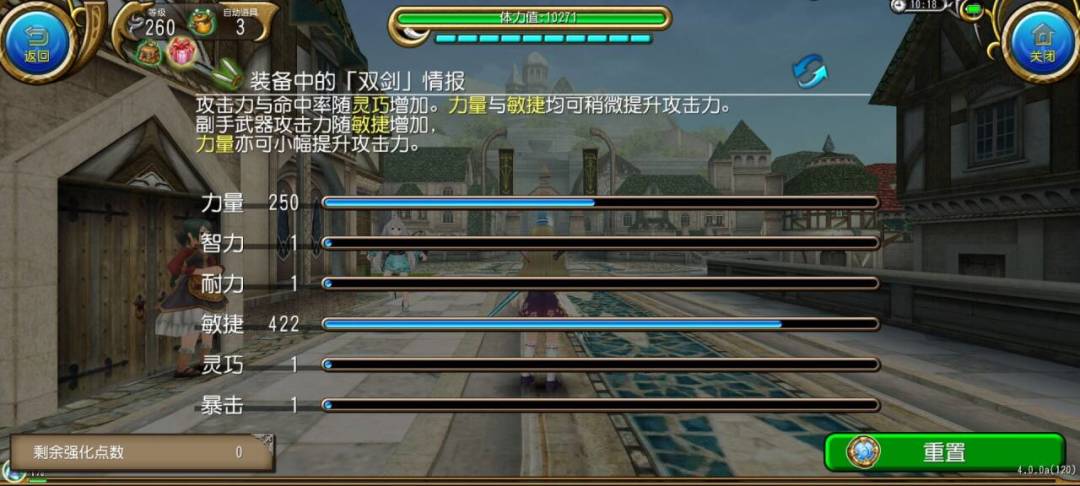 双剑的加点为主点敏捷,副点力量 以破空刃为核心的话,考虑在万速之后开始点力量