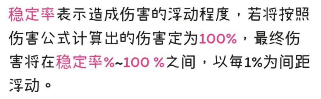 稳定扩展一下能解释成你的伤害下限稳定,指你的伤害波动区间。越低的稳定拥有越大的伤害波动,拥有越低的伤害下限,提高稳定就是提高伤害下限,使伤害波动变小。