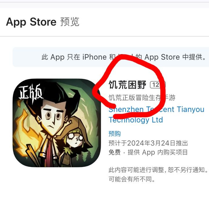 2024年2月27日早晨7点半本人在蹲厕所时发现期待三年半的不要饿死手游版的苹果市场标题打错了,望周知。