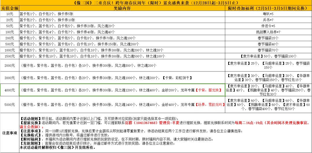 【奖励已发放】跨年·迎春·庆周年-累充活动完美收官