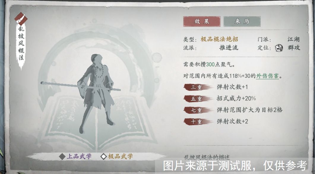 在武学模块,我们新增了诸如《回风无影剑》《燃木刀法》《分筋错骨手》《乱披风棍法》《万流归宗》《地藏心经》等江湖传说中的武学,极大地丰富了游戏中的武学搭配,还有更多新增武学等待各位大侠前去探索。