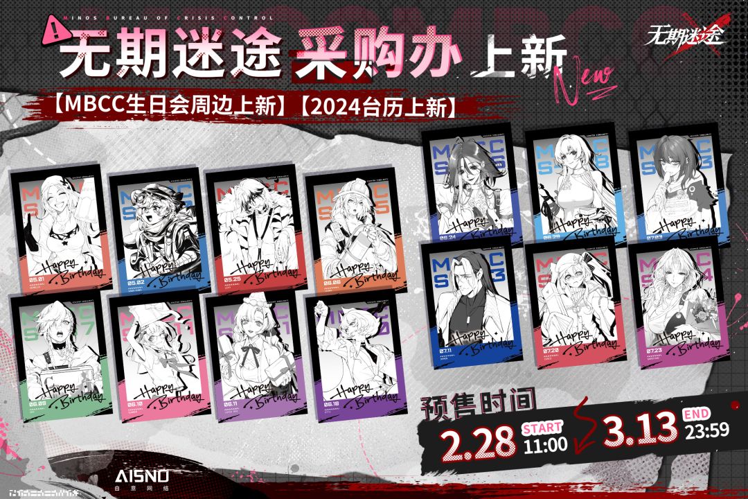 周边介绍:本次周边上新为MBCC生日会系列及2024台历周边,请点击长图查阅详情。