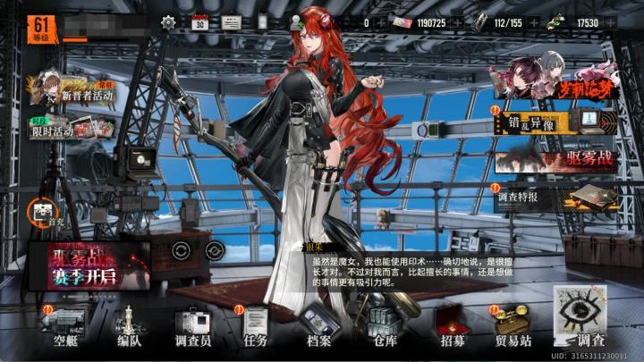 比如最重要的是,游戏没有导航页,可以方便跳转到每个系统界面。这让我有点感觉很不适应,在明日方舟大火后,它的UI逻辑和排版被很多二游模仿,成为新的革新店,而《雾境序列》同样很多地方模仿方舟,而它的UI却让我感觉是在玩一个旧时代的游戏。