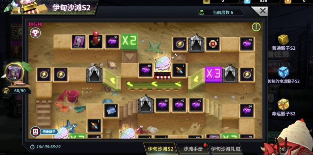 4.棋盘每层走到终点可在基础奖励库里选择一样道具领取,领取后即可进入下一层。同时每层会有1次额外购买机会,可购买对应的折扣道具,玩家可选择购买或者放弃,额外购买机会在进入下一层后则消失。