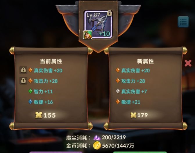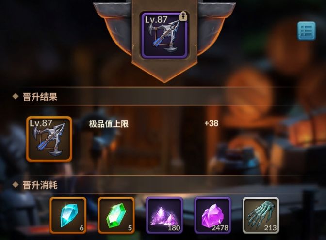 4、在锻造台,用宝石、魔尘、材料【晋升】上去。