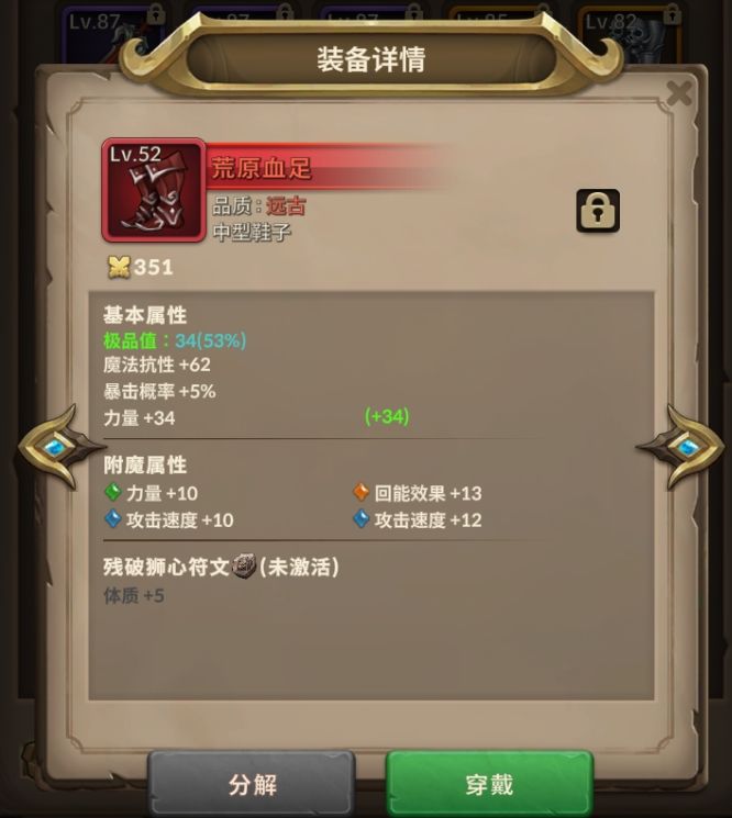 3、52级的暴击率鞋子【荒原血足】