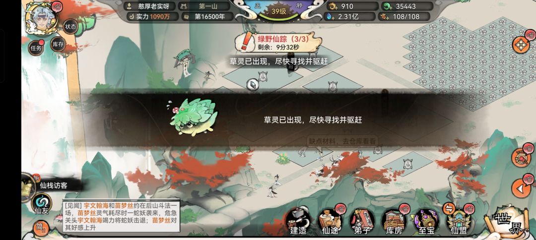 点击建造,打开地基,每个草灵需要点三次,仔细找很容易找到的