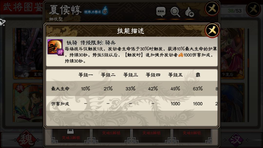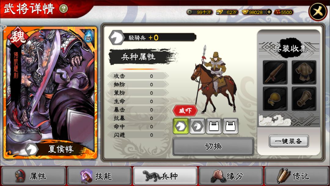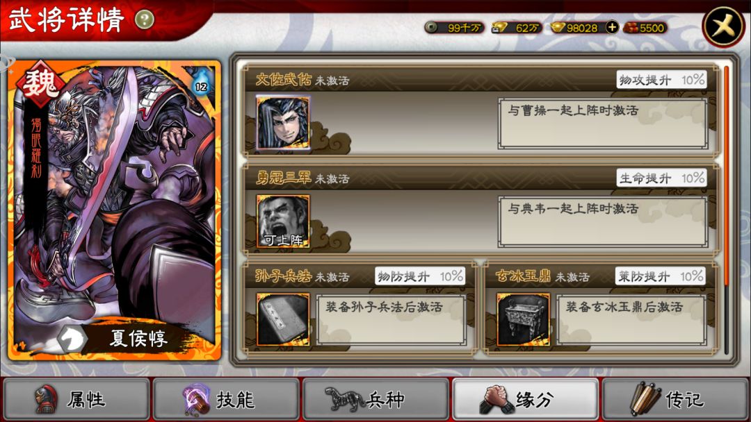 先来看看夏侯惇的整体属性界面: