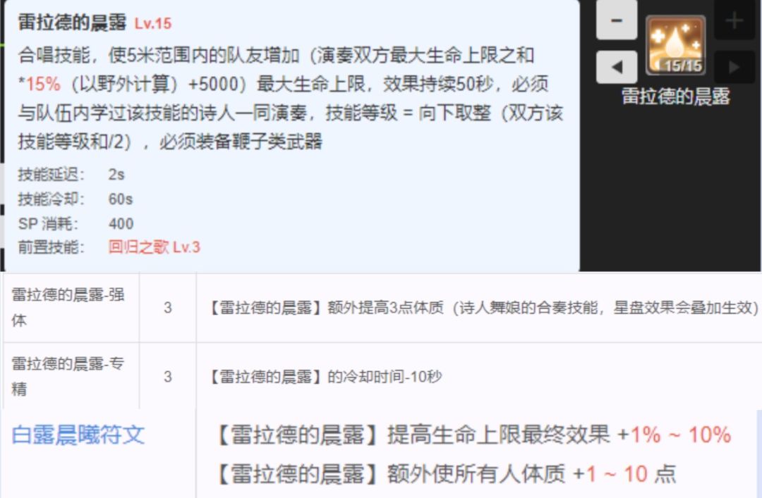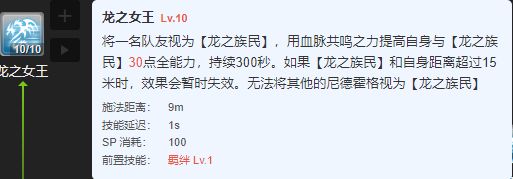 给单个队友提高30点全能力,和舞娘类似效果,需保持15米内