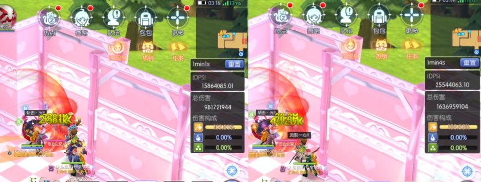 木桩对比4(喵草水塘):默认7381k,增伤后11100k,增幅3713k 提升约50.26%