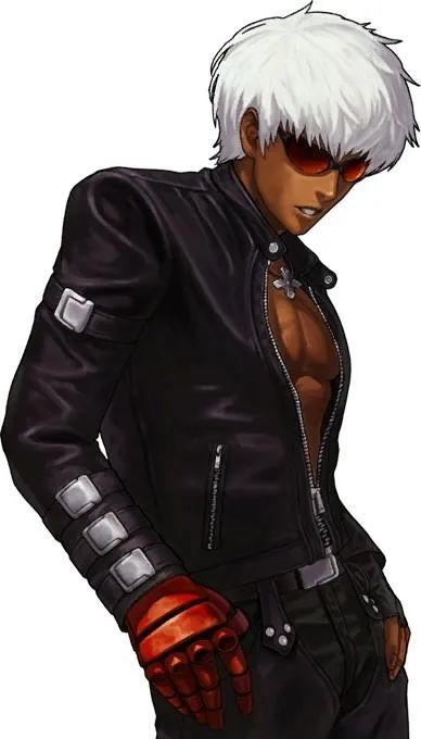 银色头发,穿着黑色机车服的K’可是说是酷帅的代言人。K’是音巢组织里最强的改造人,常年的优化改造,让K’的记忆一次次被抹去痕迹,直到他忘了自己从何而来。为了找寻记忆,他叛离了音巢组织,参加了KOF大赛。K’每次出场都是带着他喜爱的墨镜,甚至把扔墨镜做为超必杀技链式驱动的起手式。