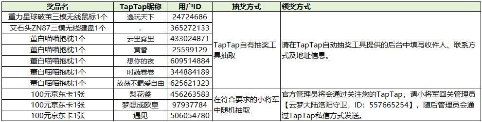 (2)虚拟奖励(电子京东卡):官方管理员将会通过关注您的TapTap,请小将军回关下管理员【云梦大陆洛阳守卫,ID:557665254】,随后管理员会通过TapTap私信方式发送哦~